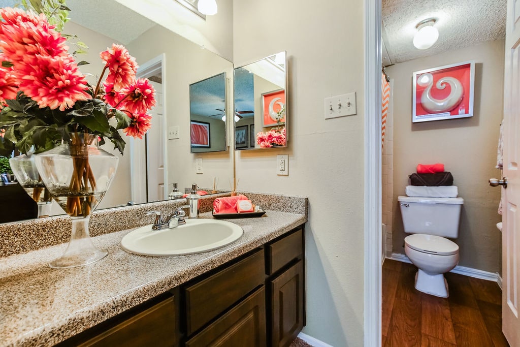 Features: Gorgeous Renovated 1 & 2 bedroom apartments, Wood plank vinyl floors, dark wood cabinets, microwave & double sink, Washer/dryer connections, fireplaces, wet bars, laundry facilities, playground & fitness center, Two pools with spa & outdoor gas grill, Located near I-10 & only 15 minutes to Downtown.