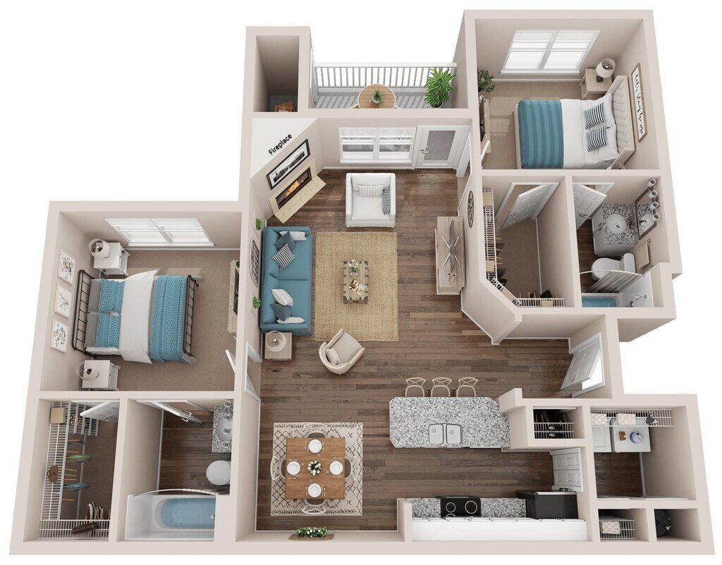 Apartment Model: 3 Bed 2 BathFrom $1,7253 Bedroom, 2 Bath, 1305 sq ftAvailable Now![]()