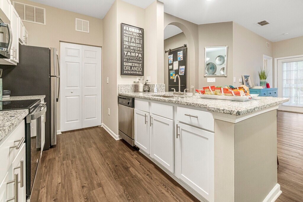 May 26, 2022They are bait and switch apartment complex. They show you the upgraded unit but they 'conveniently' don't have one available. They have some partially upgraded (hardwood in living / dining / kitchen) and that's about it. The countertops are not updated and they don't come with microwaves unless you have an older unit. Really, no microwave?! There is paint on the hardwood floors everywhere and that's in a partially upgraded unit also. Dishwasher is at least 15 yo. Fridge has dents and a ...little bit of rust. Don't get a first floor or most likely, you will have water problems where the water comes in from the porch area. I was told that if I put a nail in the wall, I am expected to fill the hole and paint the wall. WTF! Also just today, 5 (yes this number is correct) cars were stolen from the complex. Spoke with the Jax Sherriff and she stopped me. And conveniently, the cameras do NOT work. All I can say is: "Renter beware". Rent somewhere else.Read MoreReview from Apartments.com