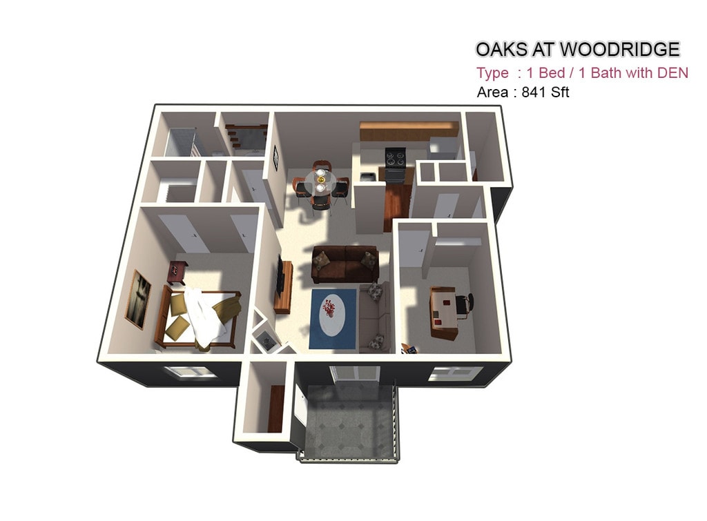 Apartment Model: One Bed / One Bath with Den1 Bedroom, 1 Bath, 841 sq ftUnavailable![]()