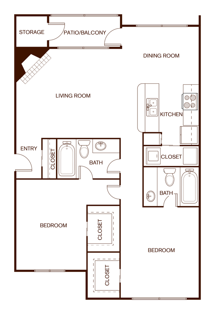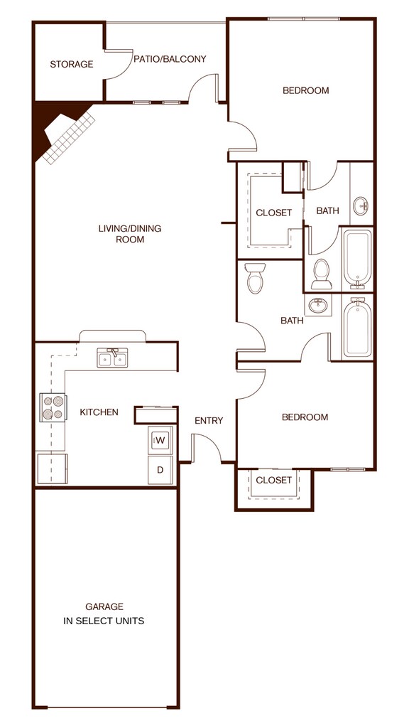 2 Beds, 2 Baths, 1184 sq ftLargest 2 BedroomThis is the largest 2 Bedroom at this PropertyModel Gallery