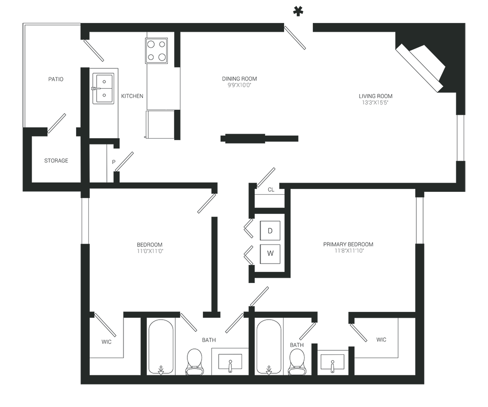 Apartment Model: RoseFrom $9081 Bedroom, 1 Bath, 692 sq ftAvailable Now![]()