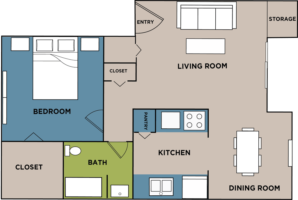 1 Bed, 1 Bath, 534 sq ftAvailable NowModel Gallery