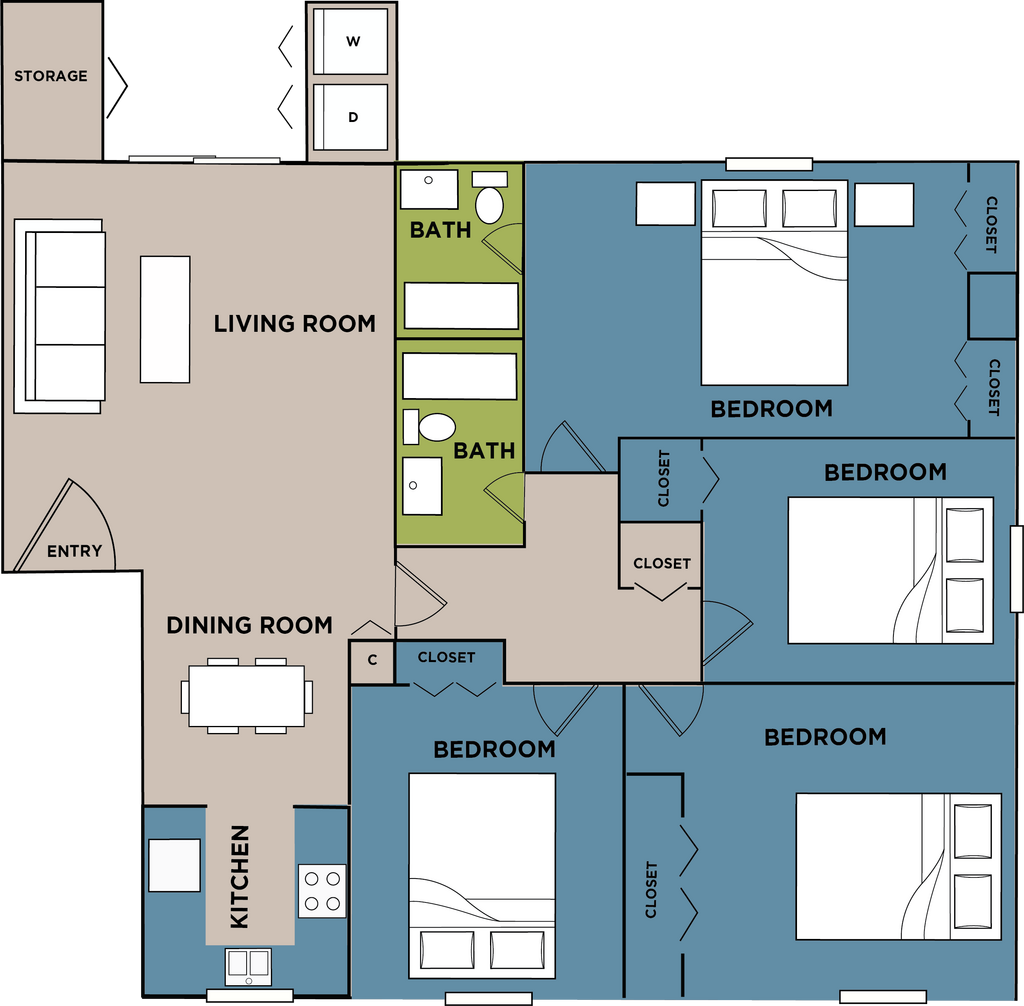 1 Bedroom to 4 Bedroom Apartments at Oakview Landing Apartments currently range from $899 to $1,399