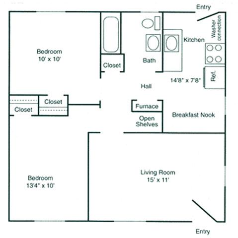 2 Beds, 1 Bath, 700 sq ftModel Gallery