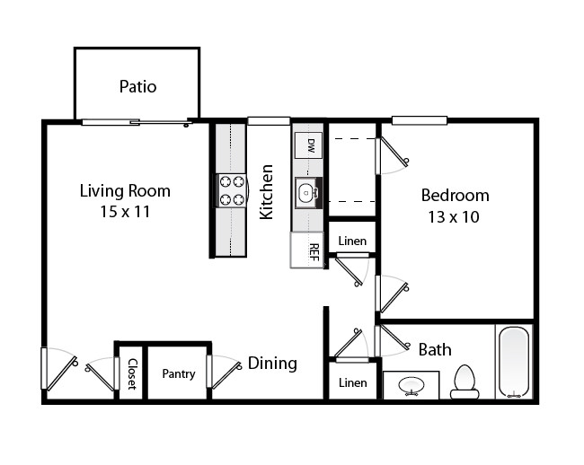1 Bed, 1 Bath, 672 sq ftAvailable NowLargest 1 BedroomThis is the largest 1 Bedroom at this PropertyModel Gallery