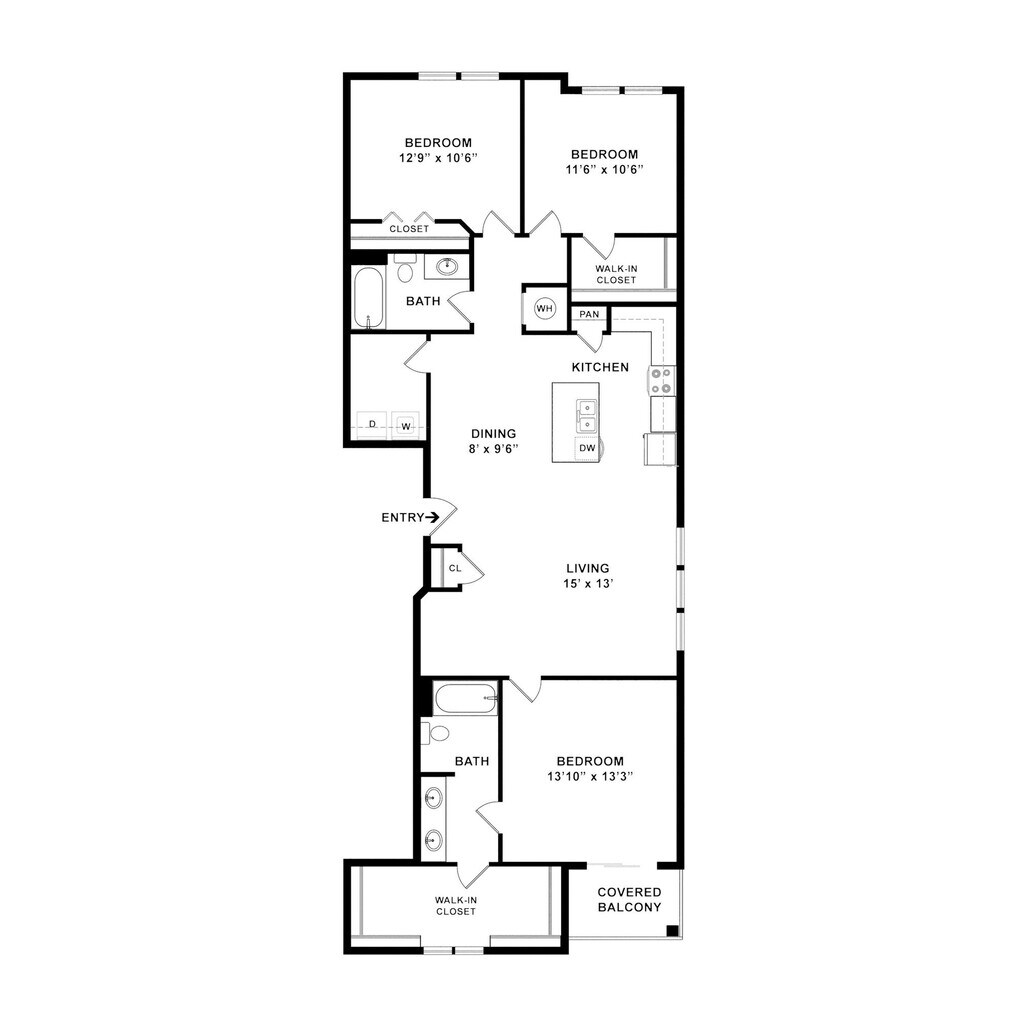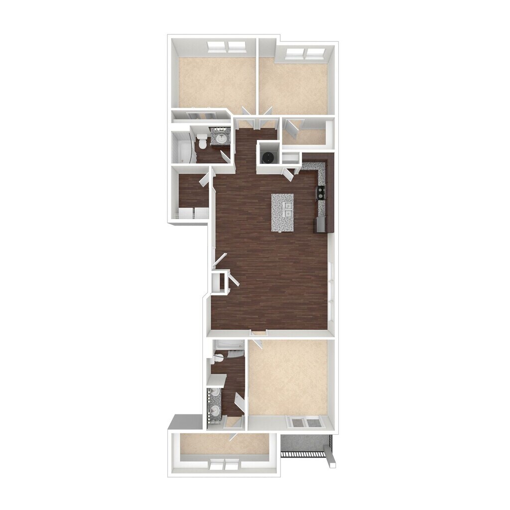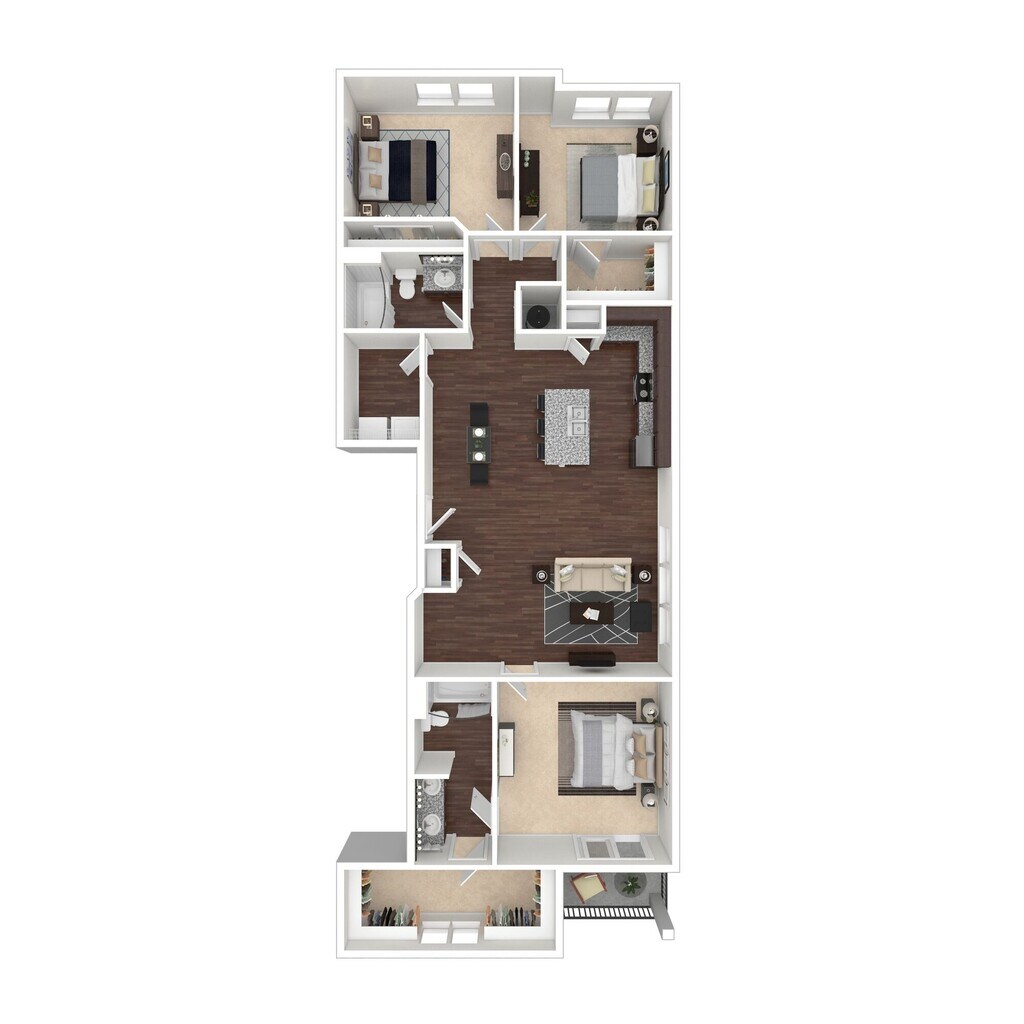 Hunter I - 1x1 - Floorplan 3 2 Bedrooms