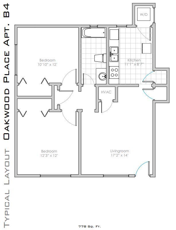 Apartment Model: Oakwood - 2/12 Bedroom, 1 Bath, 728 sq ftAvailable Now![]()