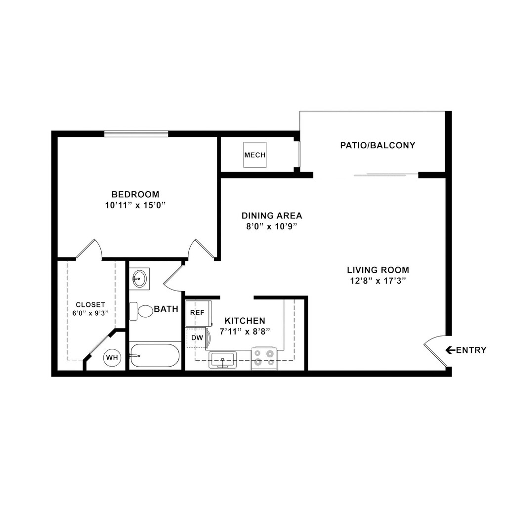 2 Beds, 1 Bath, 1099 sq ftAvailable NowModel Gallery