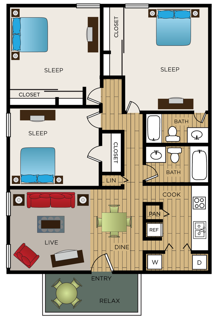 Apartment Model: S1From $750Studio, 1 Bath, 500 sq ftAvailable Now![]()