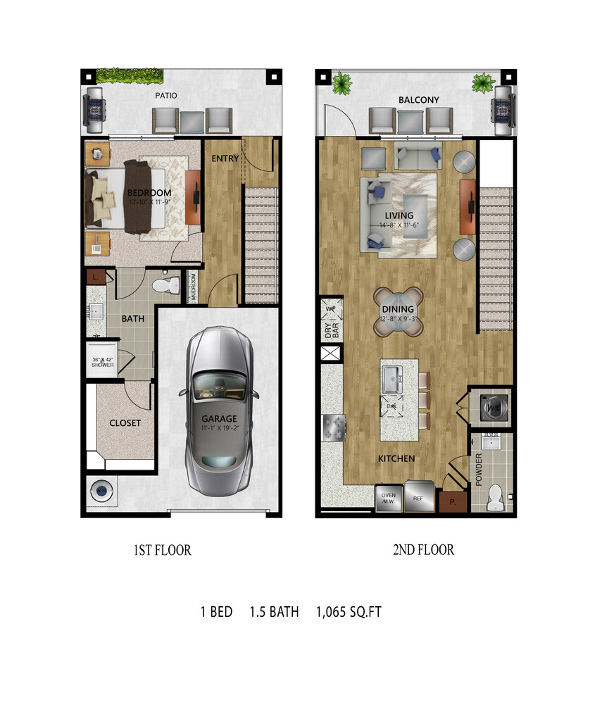 1 Bed, 1.5 Baths, 1065 sq ftAvailable NowModel Gallery
