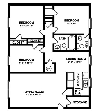 3 Bedroom / 1.5 Bath - Floorplan 1 ![]()