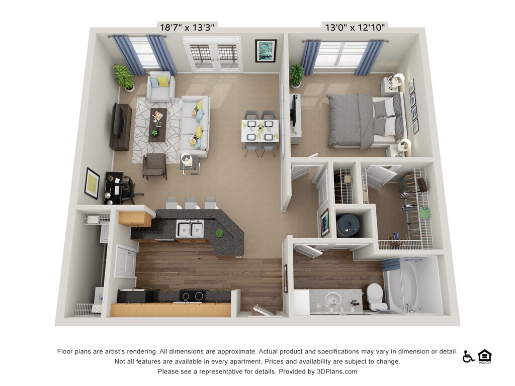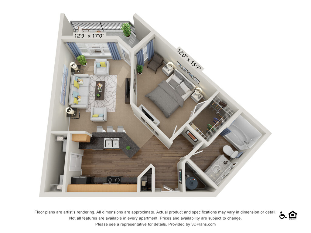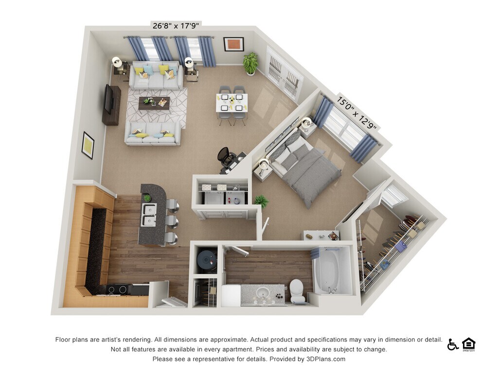 Apartment Model: B1From $1,2401 Bedroom, 1 Bath, 800-830 sq ftAvailable NowFloor plans are artist's rendering. All dimensions are approximate. Actual product and specifications may vary in dimension or detail. Not all features are available in every rental home. Prices and availability are subject to change. Base rent is based on monthly frequency. Additional fees may apply, such as but not limited to package delivery, trash, water, amenities, etc. Deposits vary. Please see a representative for details.