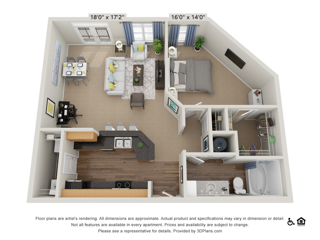 Studio, 1 Bath, 780 sq ftAvailable NowModel Gallery