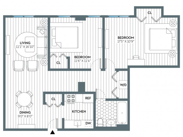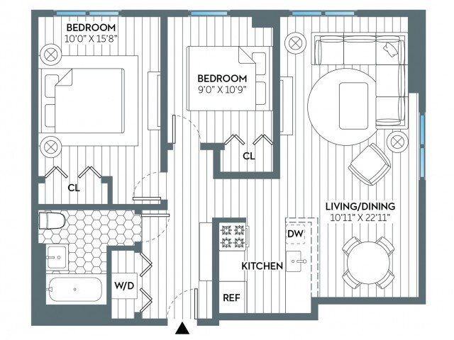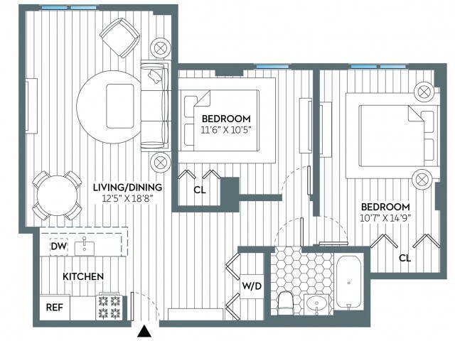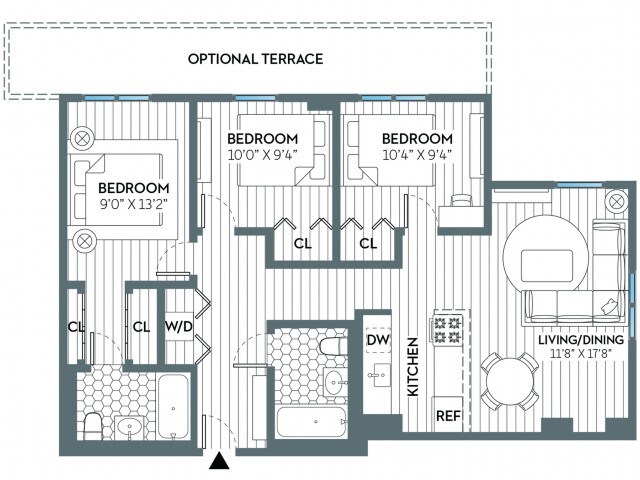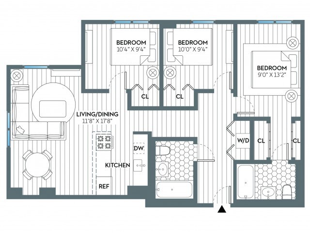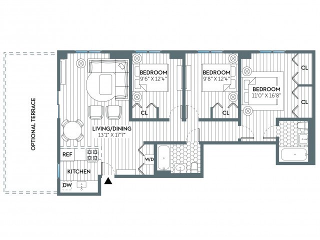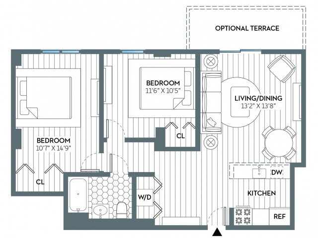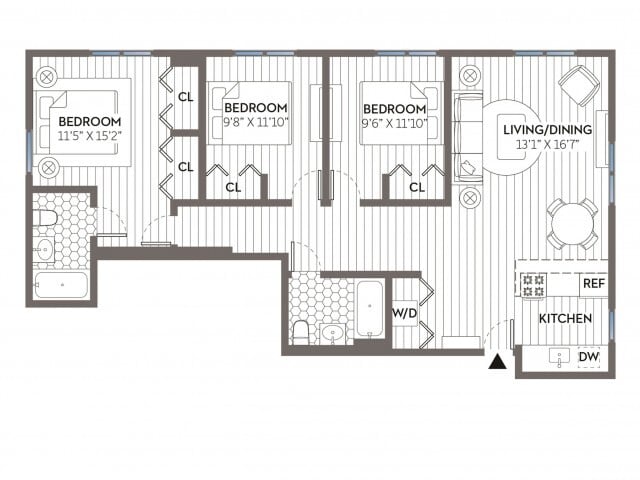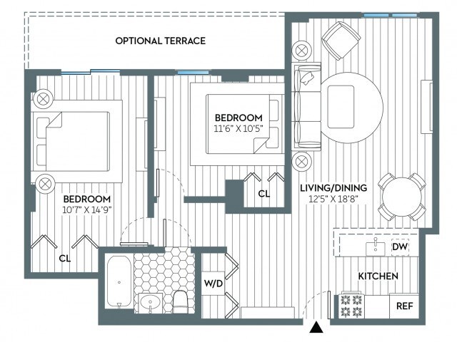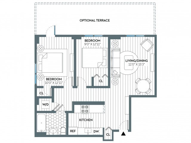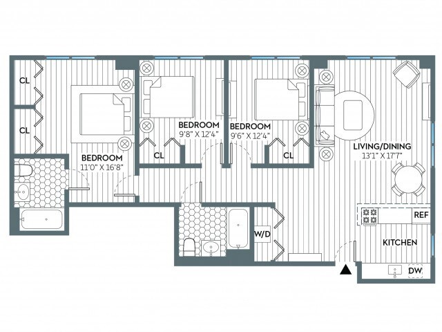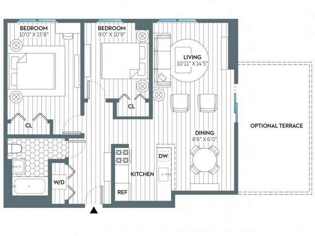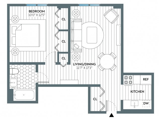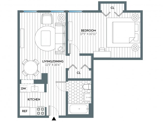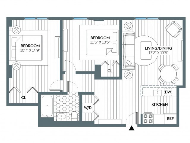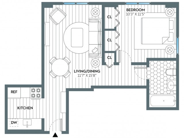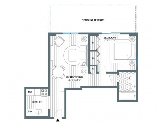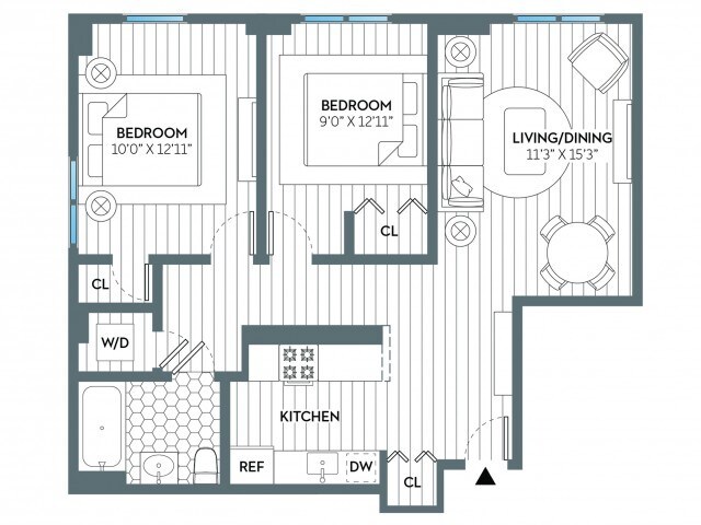 Apartment Model: Harrison (583 SF)From $3,4001 Bedroom, 1 Bath, 583 sq ftAvailable NowFloorplansPhotos![]()