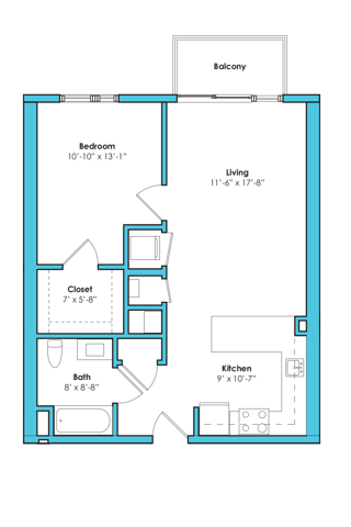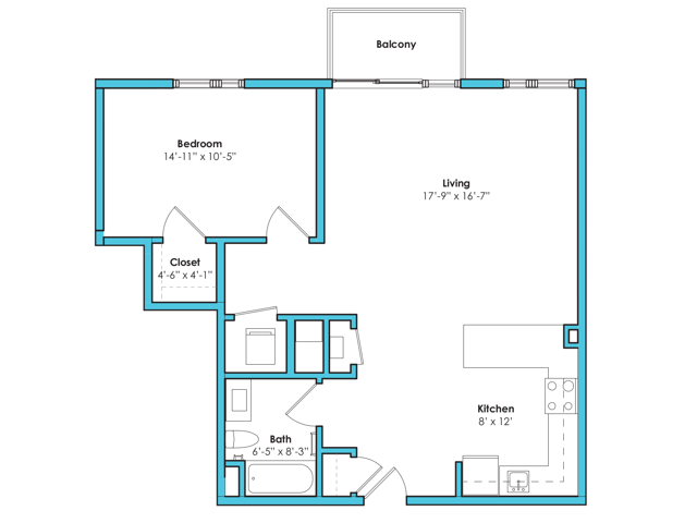 One Bedroom One Bath (694 SF)