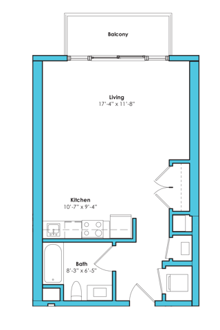 Studio (535 SF) - Floorplan 2 Apartment Unit: 318Apartment Model: Studio (535 SF)From $2,275Studio, 1 Bath, 535 sq ftAvailable Now1 Bedroom