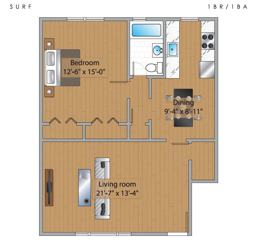 1 Bed, 1 Bath, 800 sq ftModel Gallery