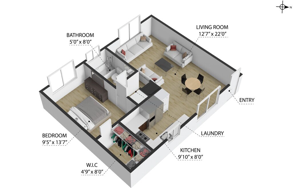 2 Beds, 1 Bath, 850 sq ftModel Gallery