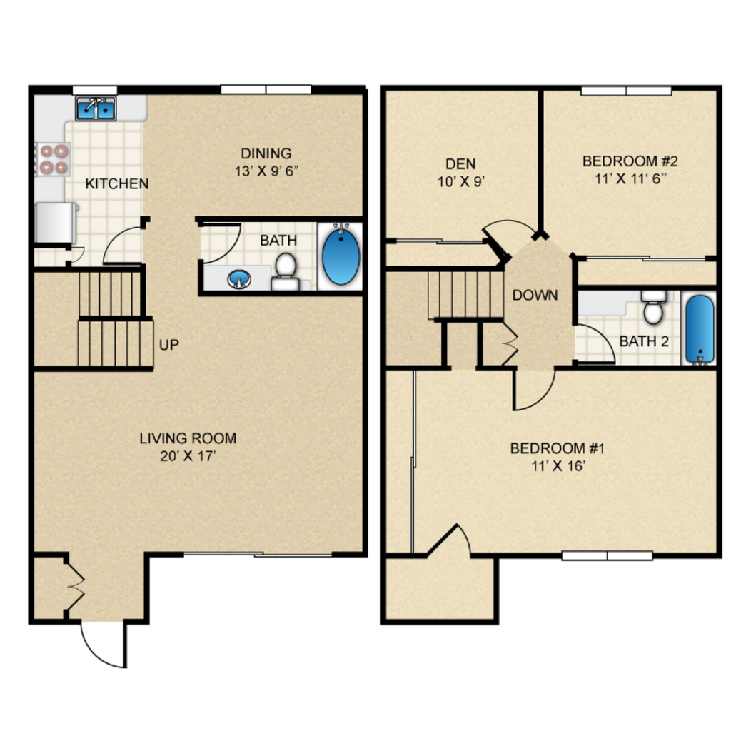 2 Beds, 1 Bath, 900 sq ftAvailable NowModel Gallery