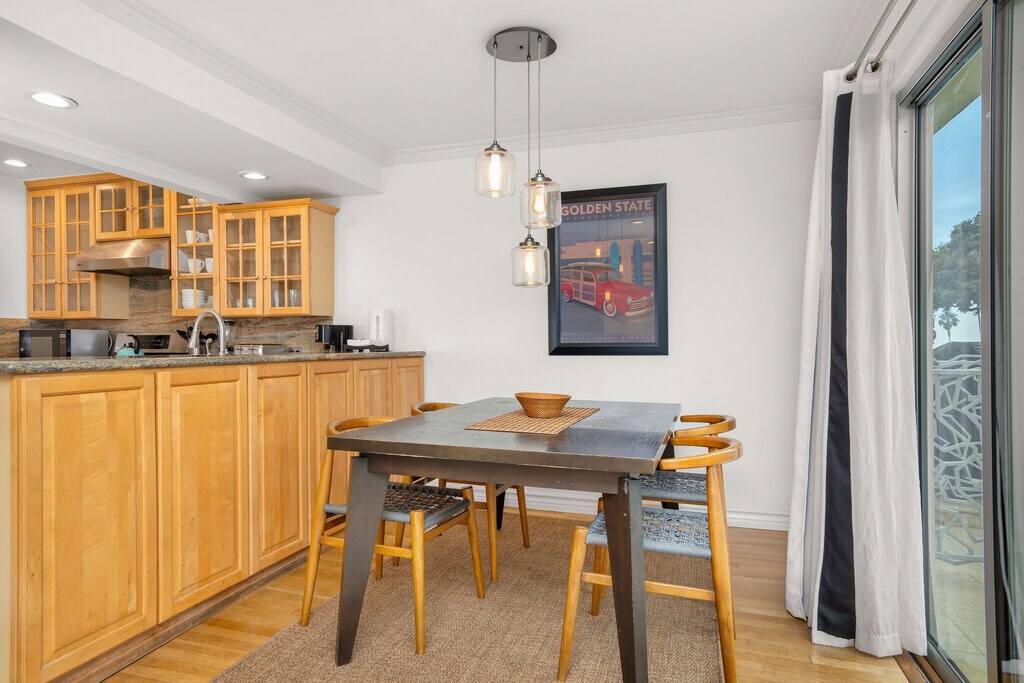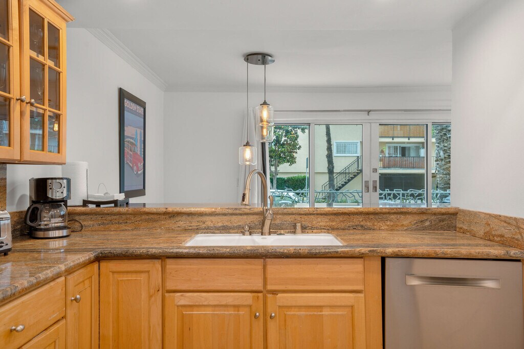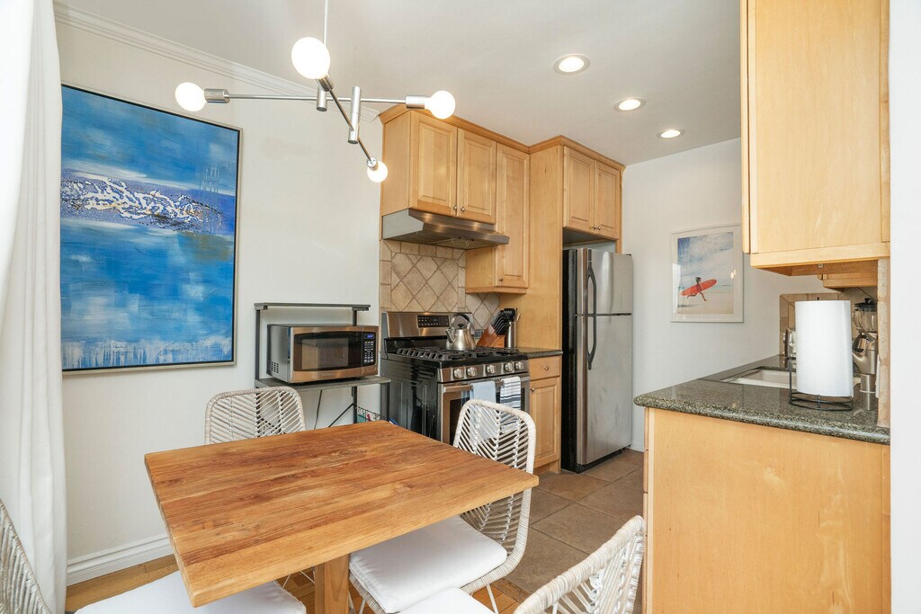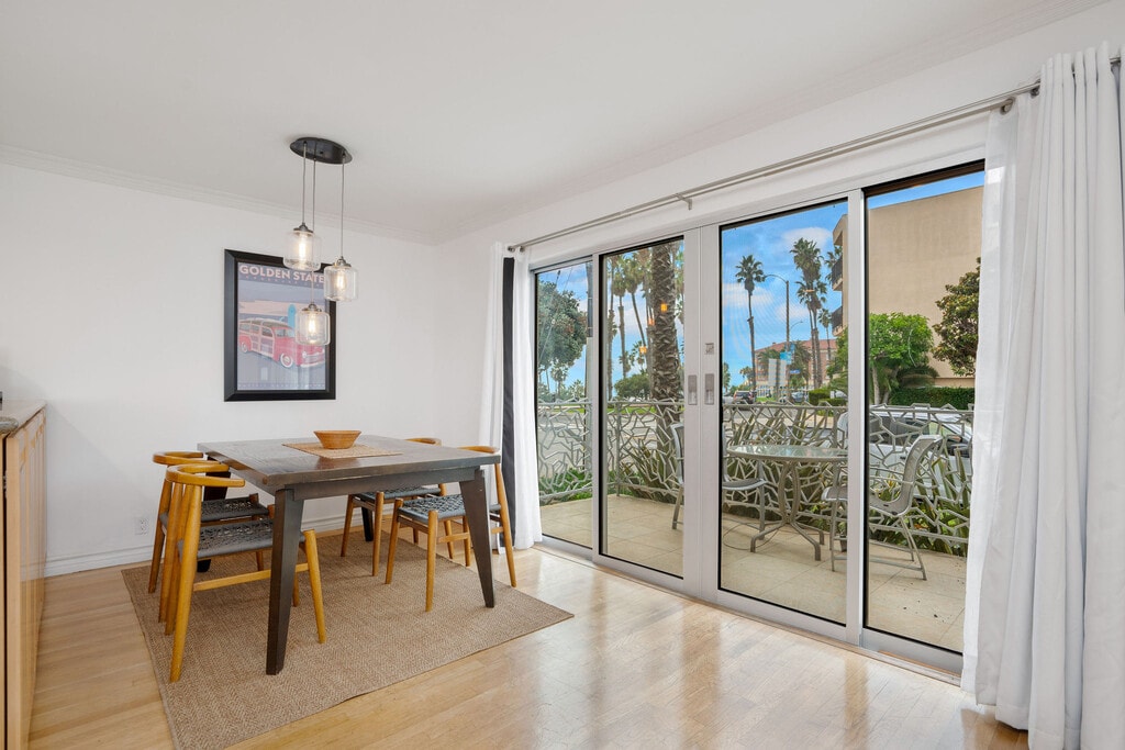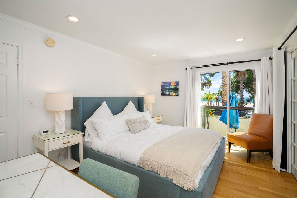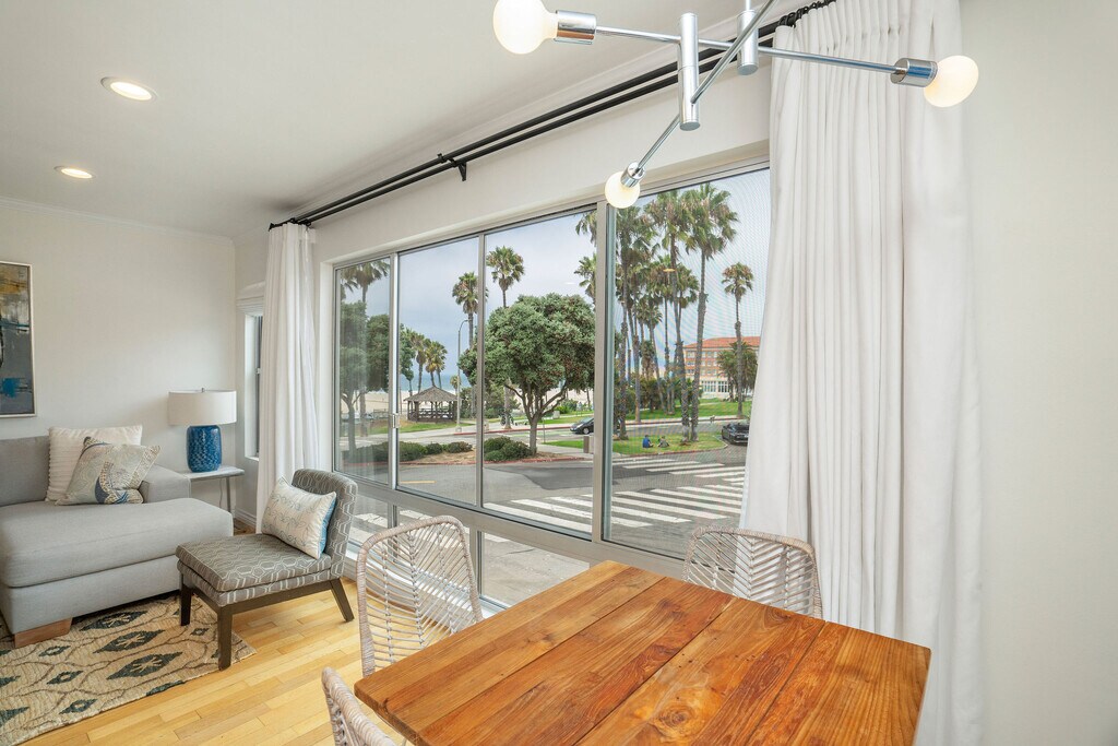 OCEAN VIEWS!! BEST LOCATION!! Just steps to the beach and bike path. It is walking distance to the Famous Santa Monica Pier, 3rd Street Promenade, Main Street, Sunday Farmers Market, close to many major hotels, shopping, restaurants, and so much more. Approximately 15-minute walk to the Venice Boardwalk. Five-minute drive to the freeway. Completely remodeled with imported Italian Milano stainless front doors, Fleet-wood windows, wood floors, recessed lights, open kitchen floor plan with granite counter-tops, stainless-steel appliances, and the bathrooms are nicely appointed with Italian marble/tile. Washer/dryer inside except the studios use the common area laundry room on premises. The Condos are tastefully decorated with contemporary modern furniture. It is fully furnished with bedding, towels, kitchen supplies. The convenience of a Luxury Hotel and all the comforts of Home. Come and check it out and enjoy the incredible beach life of Santa Monica! You and your guests will experience the most beautiful sunsets and be able to enjoy peaceful strolls on the beach.