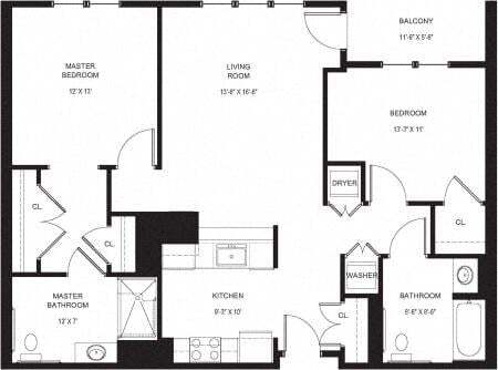 Apartment Model: 2 Bed 2 Bath$2,0972 Bedroom, 2 Bath, 1000 sq ftUnavailable![]()