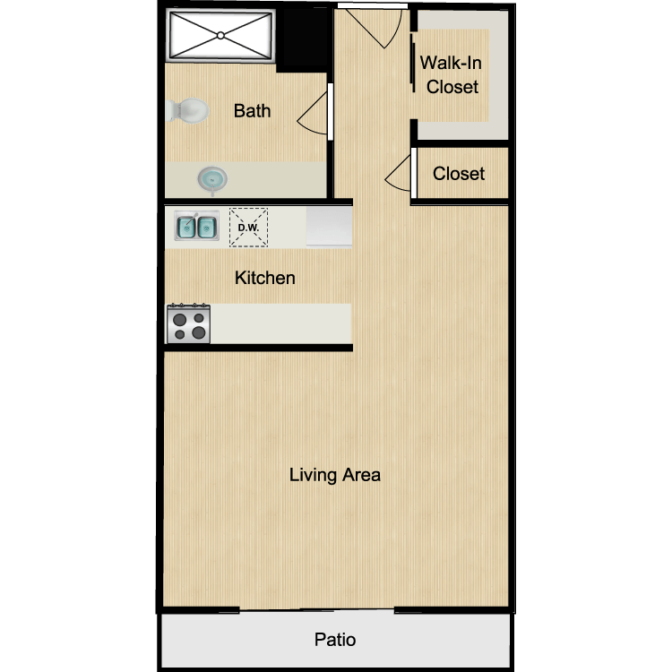 Studio, 1 Bath, 500 sq ftModel Gallery