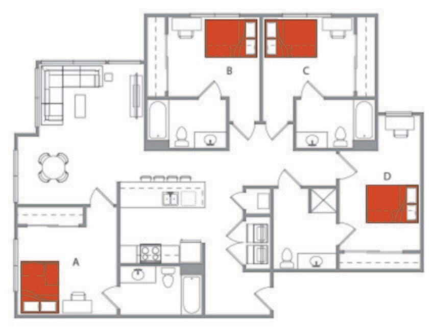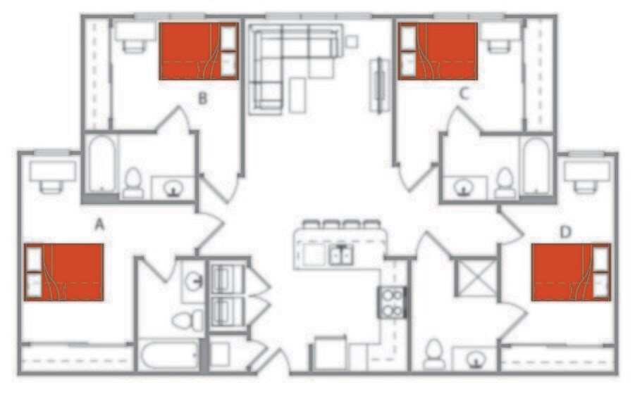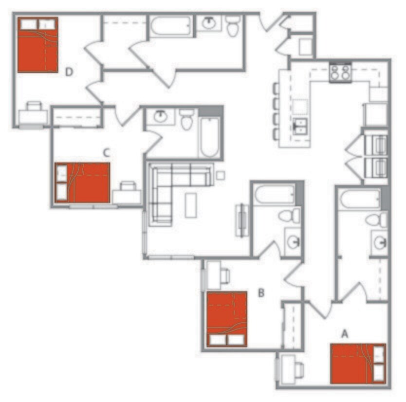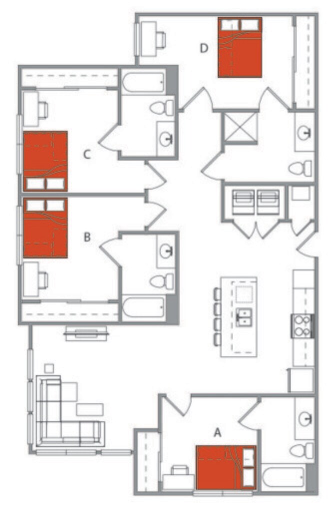 Apartment Model: D34 Bedroom, 4 Bath, 1436 sq ftUnavailable![]()