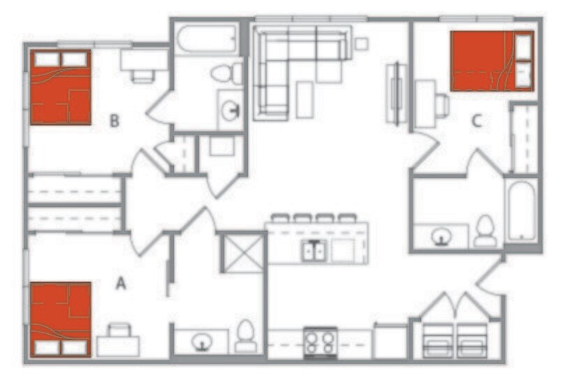 Apartment Model: C13 Bedroom, 3 Bath, 1111 sq ftUnavailable![]()