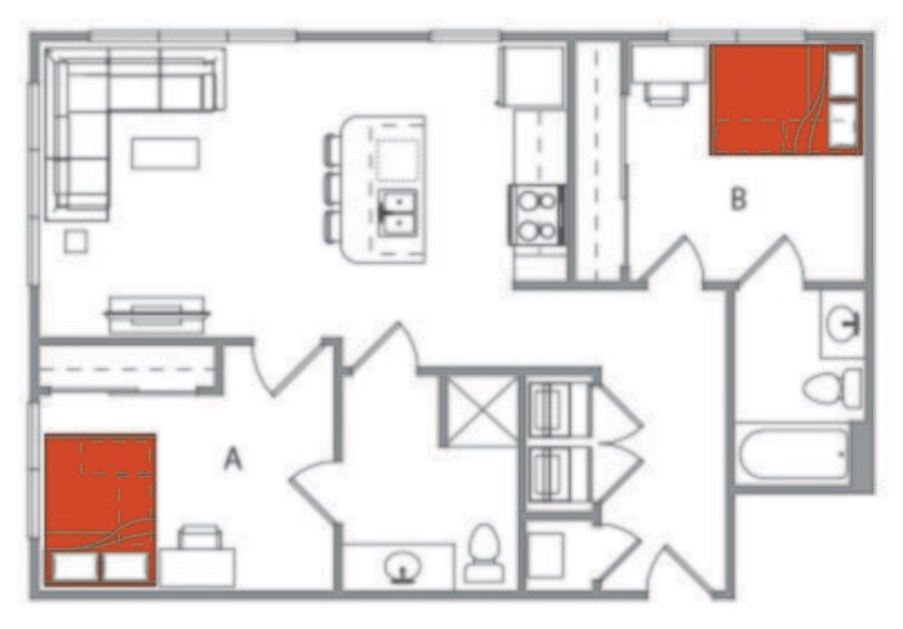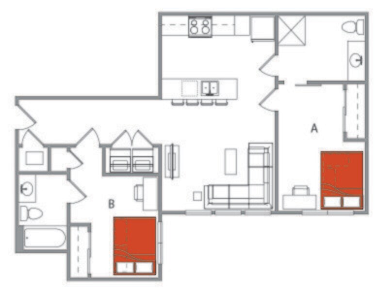 Apartment Model: B12 Bedroom, 2 Bath, 900 sq ftUnavailable![]()