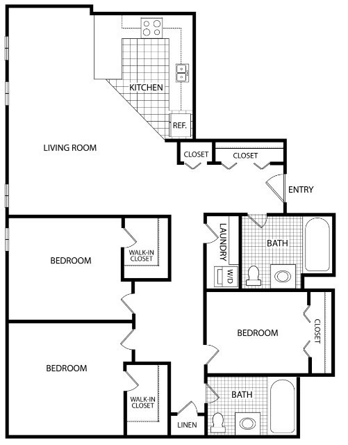 2 Bed 2 Bath - Price Per Bed - Floorplan 1 3 Bedrooms
