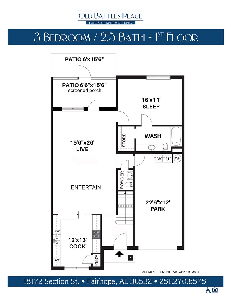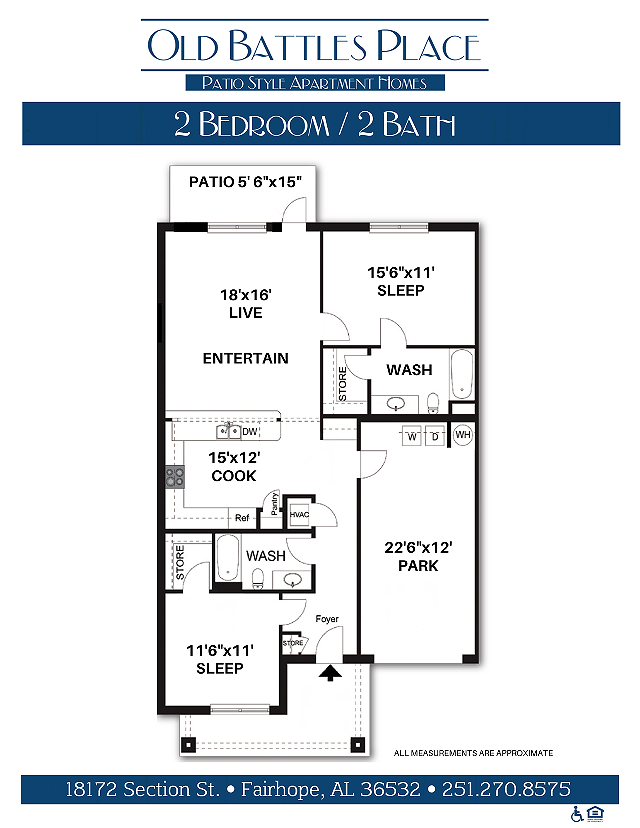 Living in style is more enjoyable than ever at Old Battles Place luxury patio apartment homes. Combine the privacy of a traditional small southern neighborhood feel with superb service that makes daily life a pleasure. NO NOISY NEIGHBORS ABOVE OR BELOW! Seconds away from Fairhope's charming downtown area, it is considered the heart of Baldwin County. Fairhope is flush with historic buildings, locally owned chic boutiques, quaint antique shops, specialty cafes, art galleries, independent book stores, elegant dining, and much more. You will also enjoy the gorgeous panoramic views of Mobile Bay with an abundance of outdoor activities to keep you busy. Old Battles Place is the perfect place to call home!