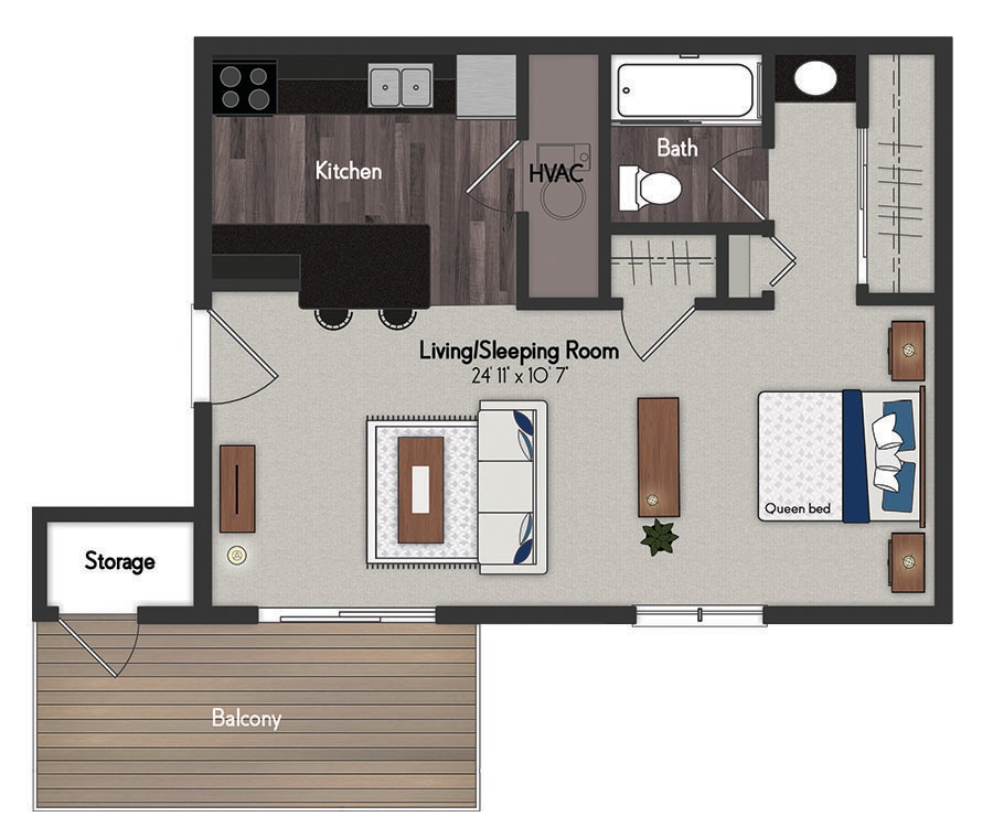 Studio, 1 Bath, 550 sq ftAvailable NowModel Gallery