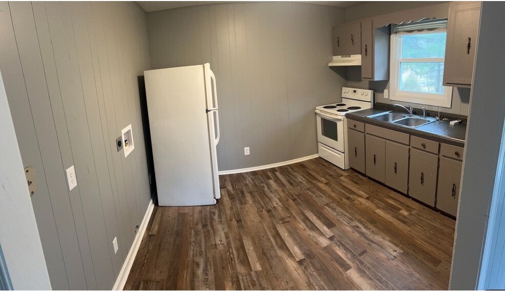 Lower level 2 bedroom, 1 bath apartment in an 8-unit brick building surrounded by farmland yet within 2 miles access to I-26 at Gray, TN and 3.5 miles access to I-26 at Boones Creek Road, TN. Large, eat-in kitchen with newer appliances (range, vent hood and refrigerator). Efficient, easy-to-operate windows with blinds. There are ceiling fans in both bedrooms, the kitchen and the living room. Fresh paint! Linoleum throughout living spaces. The bedroom carpets have been professionally cleaned. Laundromat facility located within 2 miles next to a Food City grocery store. Water, city sewer and garbage furnished.