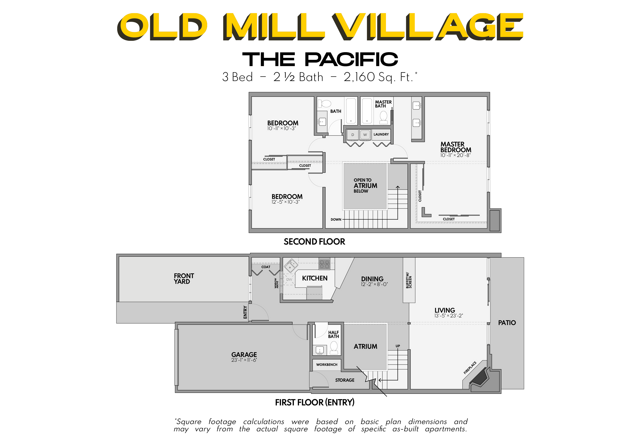 1 Bedroom to 3 Bedroom Apartments at Old Mill Village currently range from $1,800 to $3,595