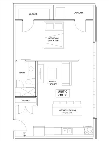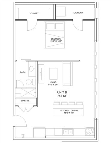 1 Bed, 1 Bath, 743 sq ftModel Gallery