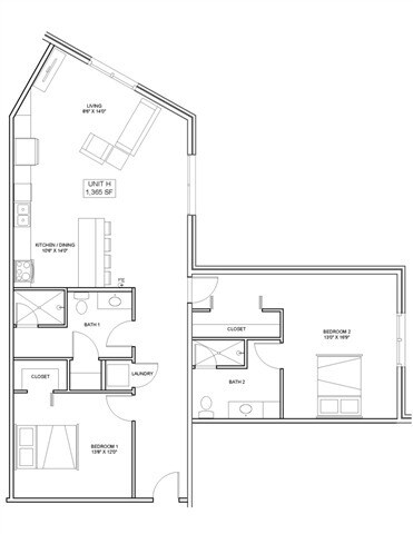 2 Beds, 1 Bath, 803 sq ftAvailable NowModel Gallery