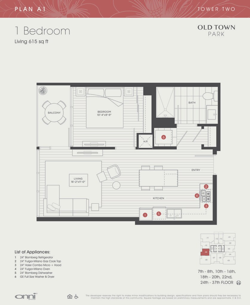 1 Bed, 1 Bath, 615 sq ftModel Gallery