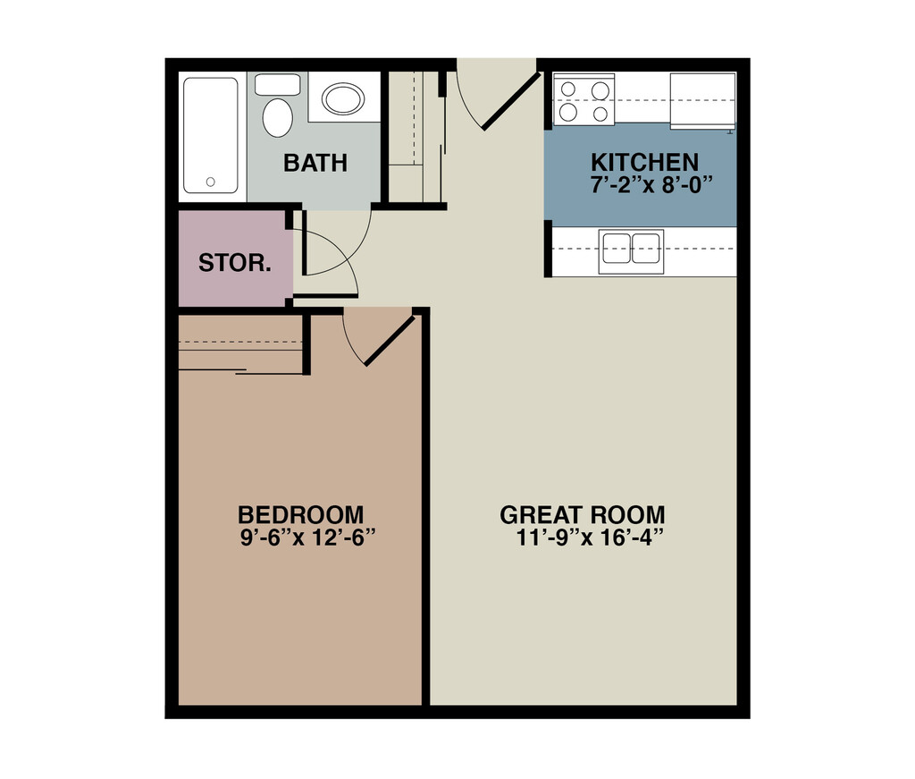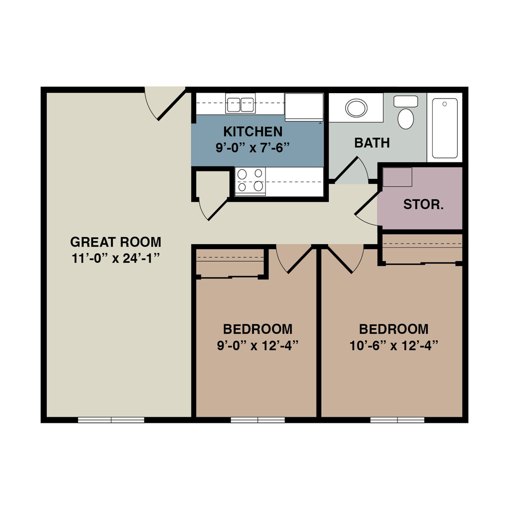 1 Bedroom - Senior - Floorplan 1 2 Bedrooms