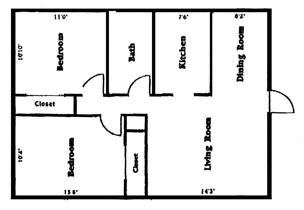 2 Beds, 1 bath - Floorplan 1 2 Beds, 1 bath