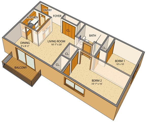 2 Beds, 1 Bath, 867 sq ftAvailable NowModel Gallery