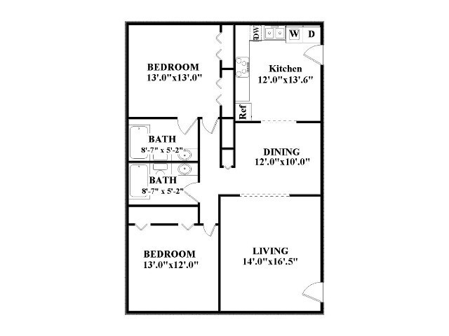 Apartment Model: 2-2DN2 Bedroom, 2 Bath, 1180 sq ftUnavailable2-2DN - Floorplan 1 5 Bedrooms