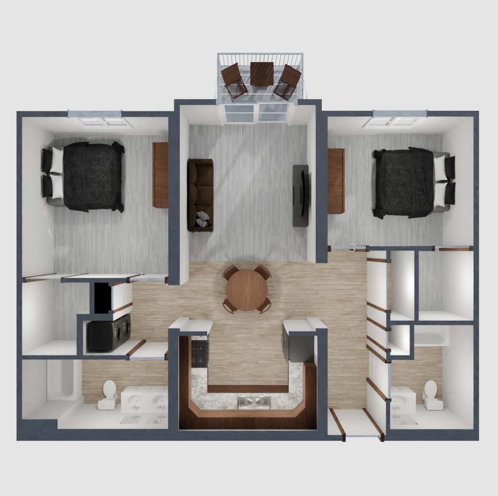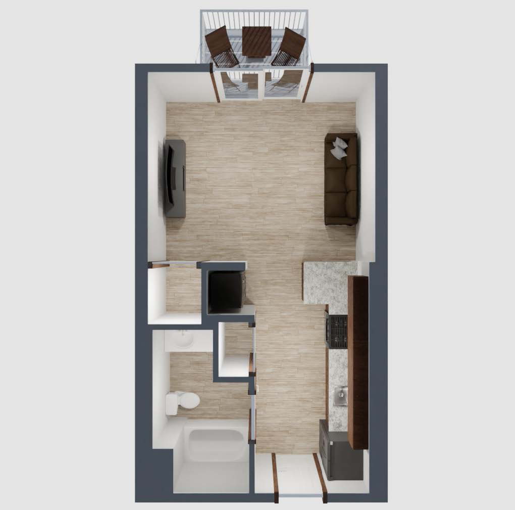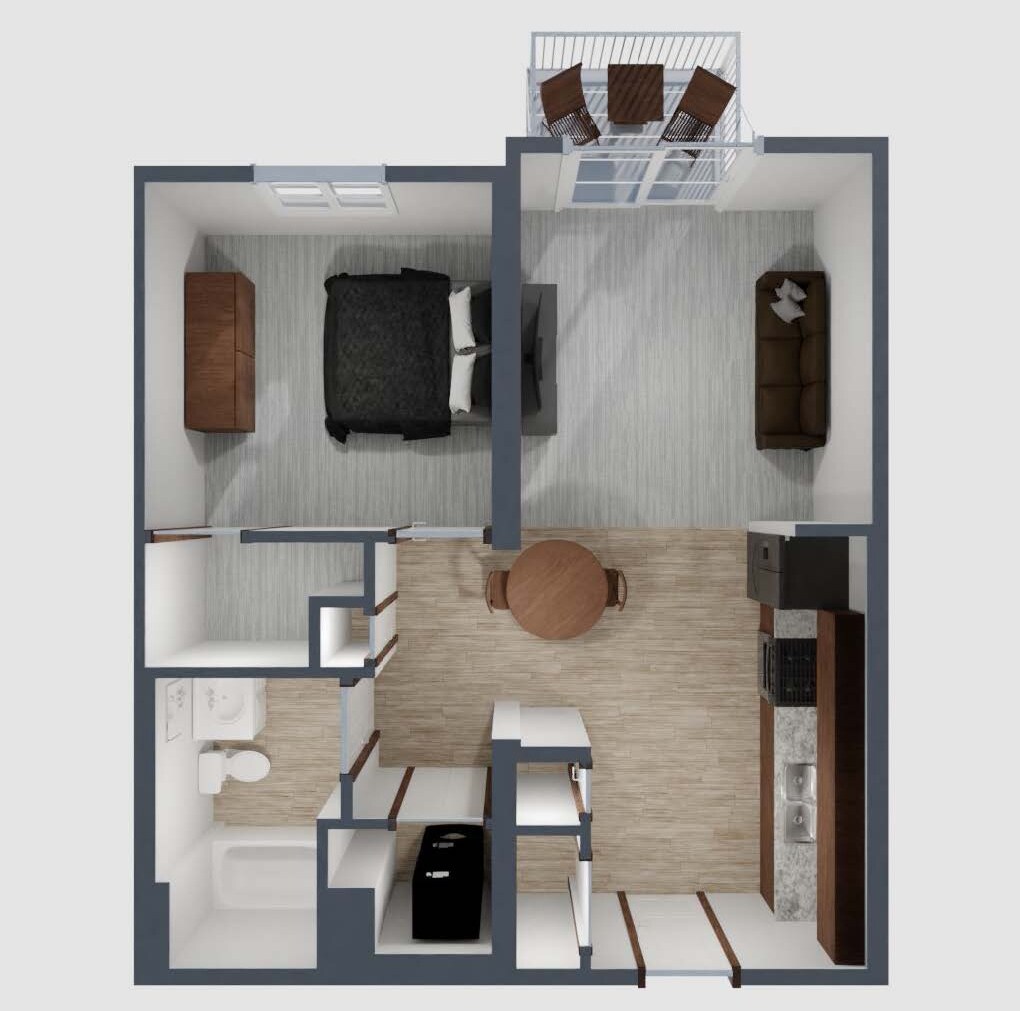 1 Bed, 1 Bath, 670-733 sq ftPlus FeesAvailable NowModel Gallery