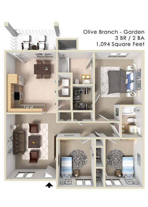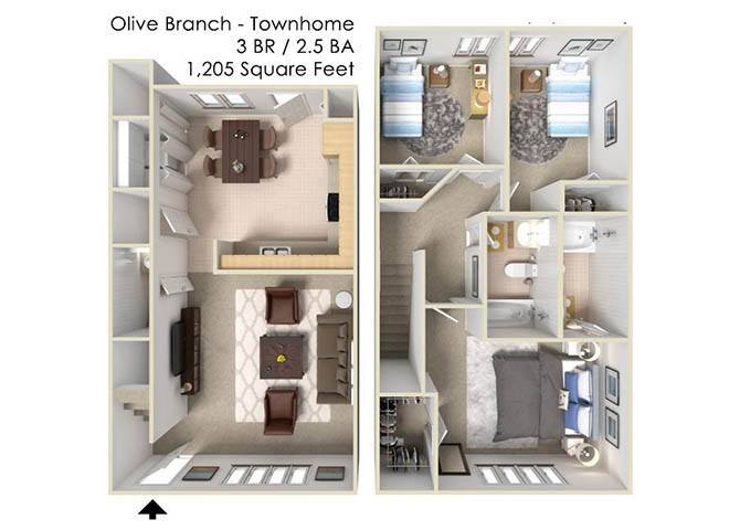 Olive Branch Townhomes offers 3 Bedroom apartments starting from $1,435 and having 1,108–1,205 sq ft. Here is the current pricing and availability:
