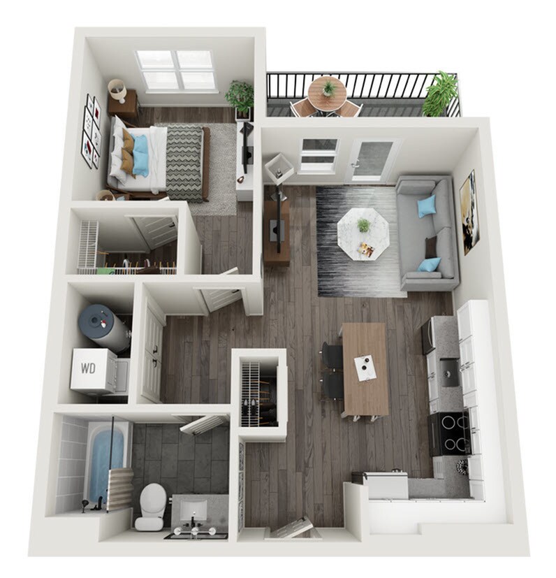 Apartment Model: A1From $2,4101 Bedroom, 1 Bath, 631 sq ftAvailable Now![]()