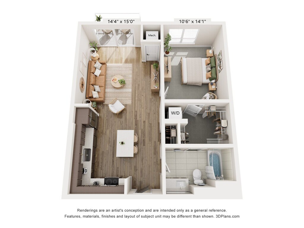 1 Bed, 1 Bath, 587 sq ftPlus FeesAvailable March 1, 2026Model Gallery