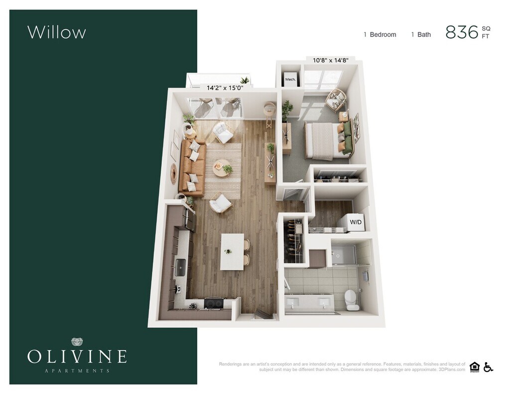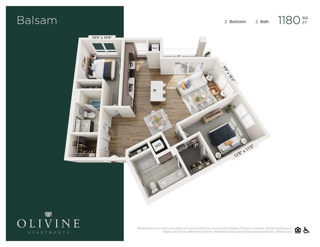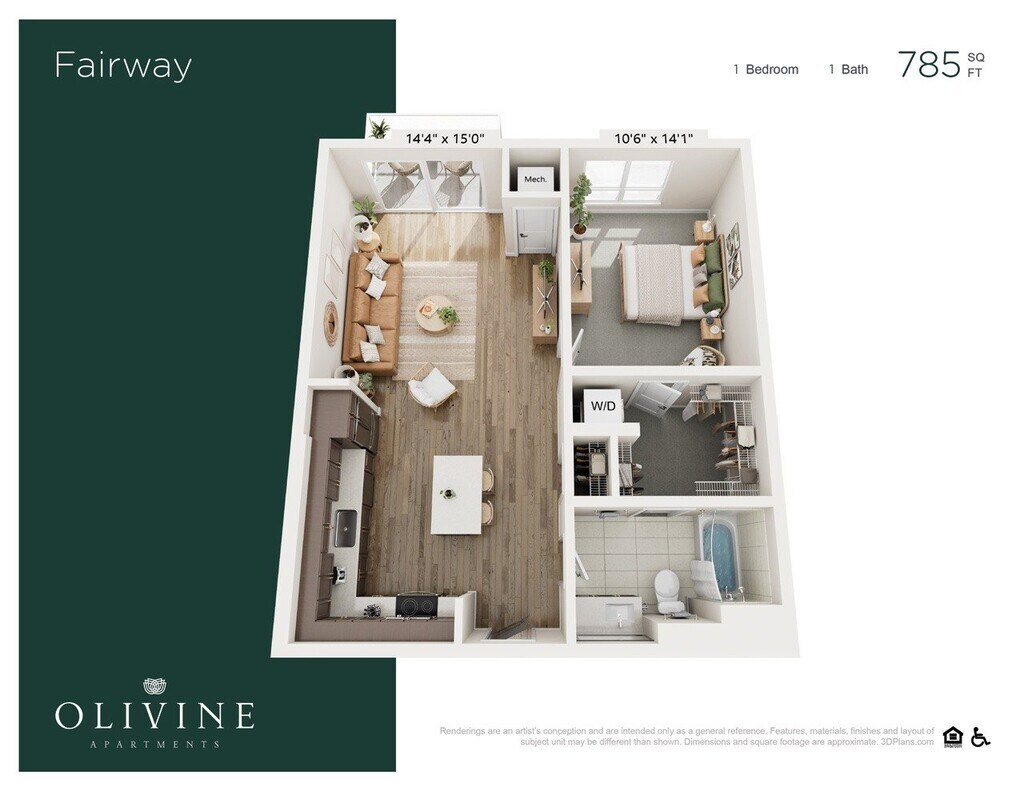Studio to 3 Bedroom Apartments at Olivine Apartments currently range from $1,595 to $3,515