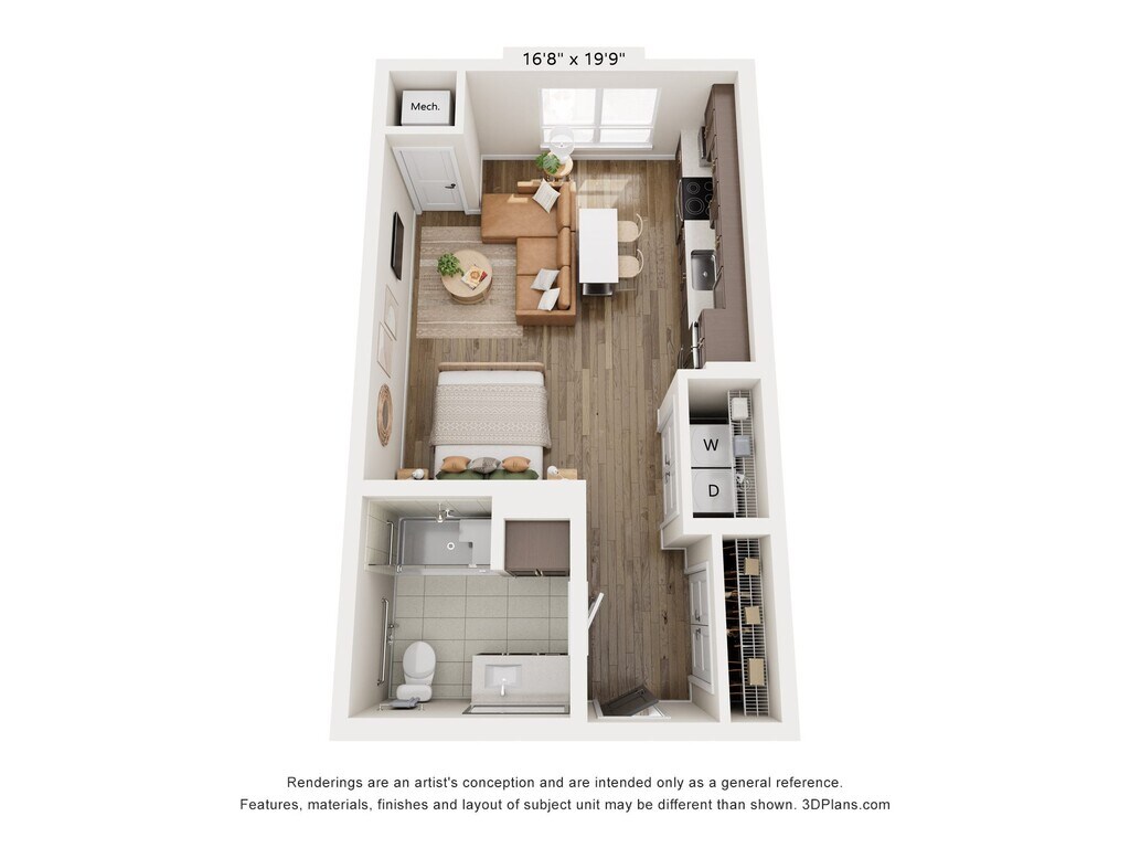Studio, 1 Bath, 534 sq ftPlus FeesAvailable March 1, 2026Model Gallery