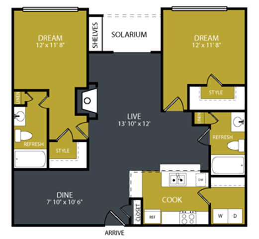 2 Beds, 2 Baths, 1323 sq ftAvailable NowLargest 2 BedroomThis is the largest 2 Bedroom at this PropertyModel Gallery