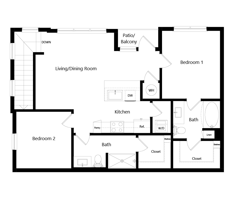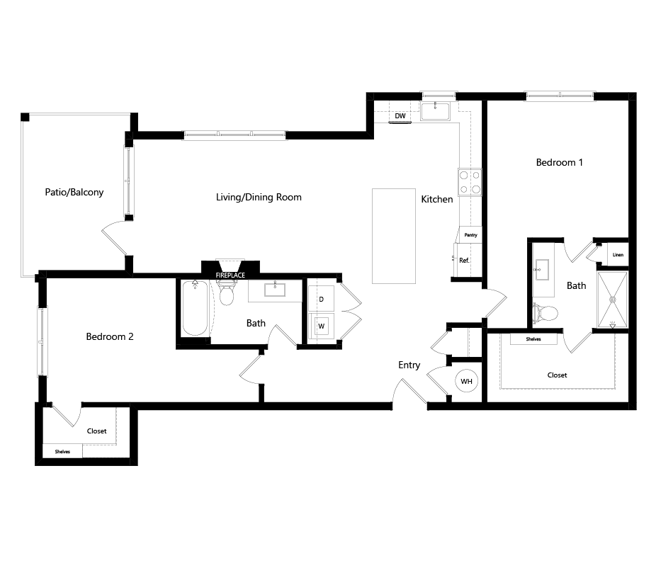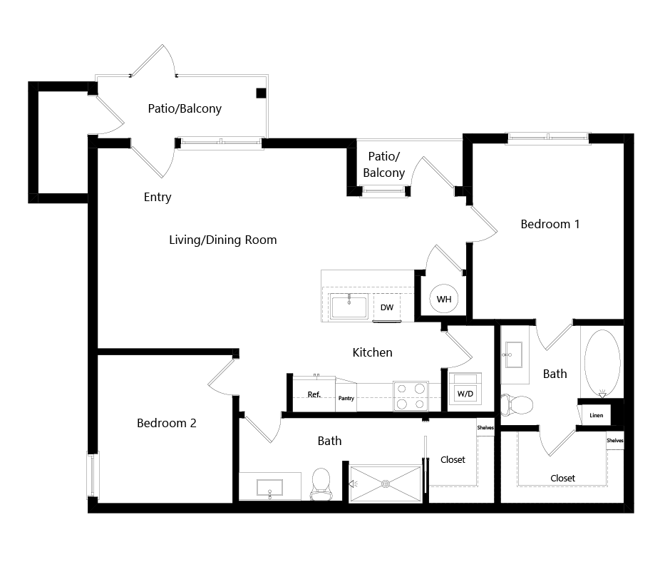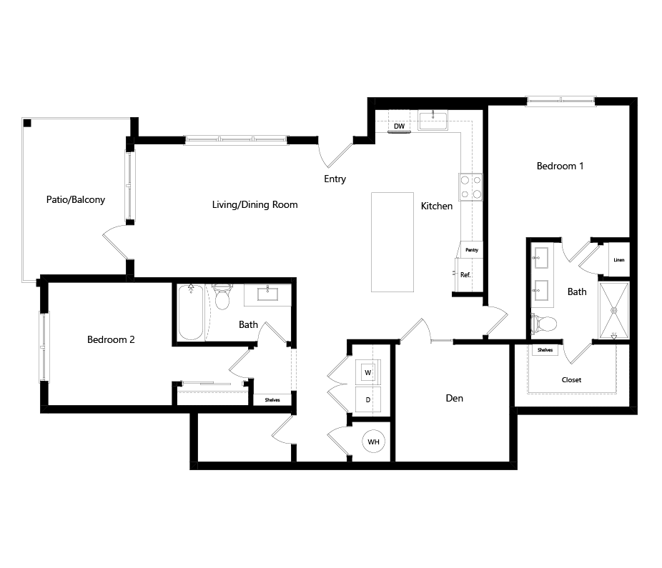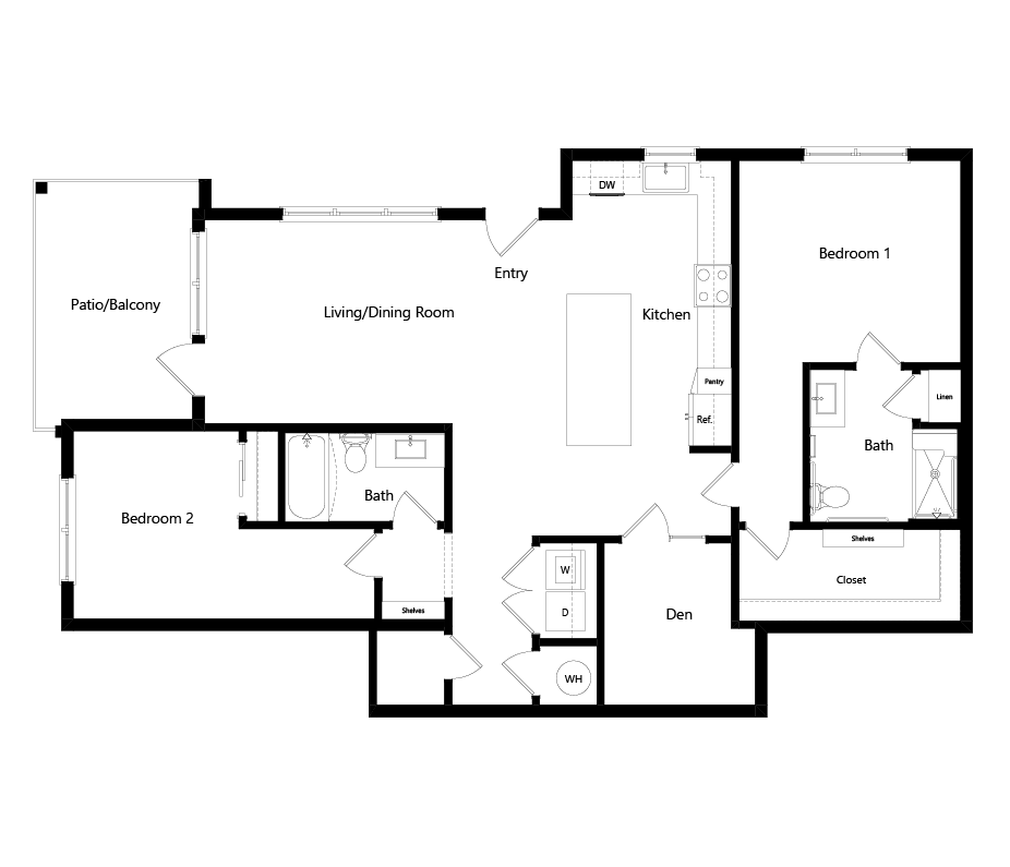 Apartment Model: A101 Bedroom, 1 Bath, 781 sq ftUnavailable![]()